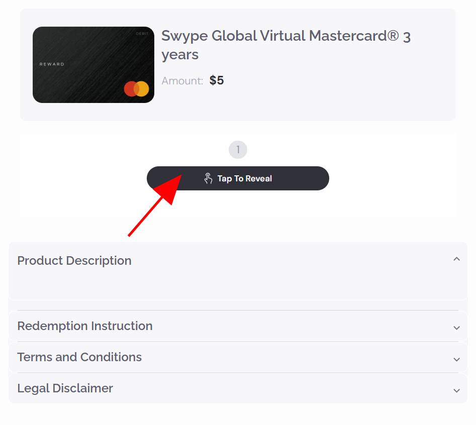 بعد از آن کد گیفت کارت که از سایت GiftCard.iR یا از سایت معتبر GameCode.iR خریداری کردید برای شما ارسال شد ، لینک swype.cards را باز کنید و صفحه زیر باز میشود و روی گزینه Tap reveal کلیک کنید :