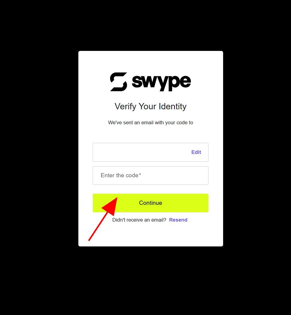 حال کدی که به ایمیل ارسال شده را در این مرحله وارد و سپس گزینه continue را انتخاب کنید :