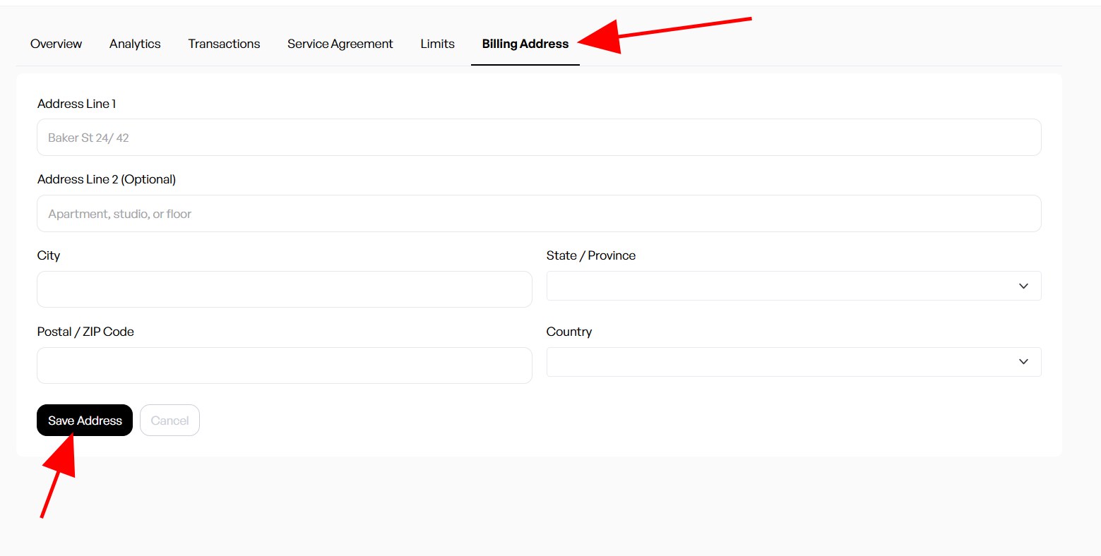 حال می توانید از تب Billing Address هم برای کارت آدرس تعریف کنید و سپس گزینه Save Address را انتخاب کنید.
